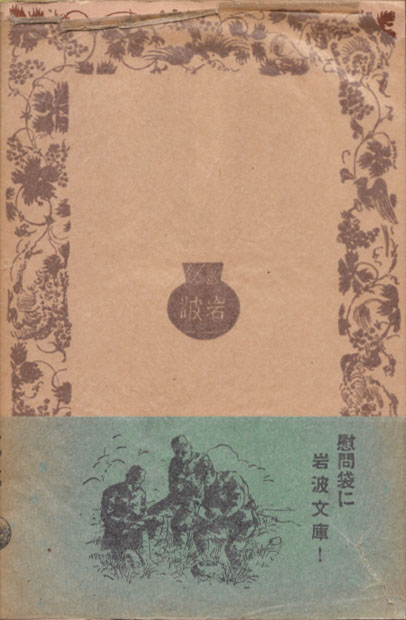 で、→に並べた2枚のイメージということになる。1枚は岩波文庫、もう1枚はポケットブックスの裏表紙で、いずれも戦前に発行されたものなのだけど、岩波文庫の帯には――そう、慰問袋に岩波文庫! と、これはどう見たって「梅に鶯、松に鶴、朝吉・清次の名コンビ」というのたァほど遠い。何しろ岩波文庫を読んでいるだけで「アカ」と決めつけられたような時代だったんだから。そもそも慰問袋に岩波文庫を入れたところで恤兵部に没収されて本人の手には届かなかっただろうと思うのだけど、実はそうでもなかったらしい。昭和37年に刊行された山崎安雄著『世紀の大事業 岩波文庫物語』という本によると、「支那事変に際し、恤兵部から志賀直哉『小僧の神様』以下八点、翻訳物はバルザック『知られざる傑作』以下十二点、計二十点を各五千冊ずつ合計十万冊の注文があった」。さらには「太平洋戦争に際しても、岩波文庫は恤兵部へ納品されたようだ」。つまり岩波文庫は恤兵部ご用達だったということになるんだけど、意外を通り越して恤兵部の真意が読めん。一応、同書の説明を引けば「岩波文庫なんかつぶしてしまえというファッショ勢力の圧力に対して、現地の兵隊からのぜひ送ってくれという声が、ここまで当局を動かしたのが痛快だった。いくら軍で岩波文庫はいけないといっても、出征兵士の求めるものを防ぎ切れなかったのだ」としているのだけど……。