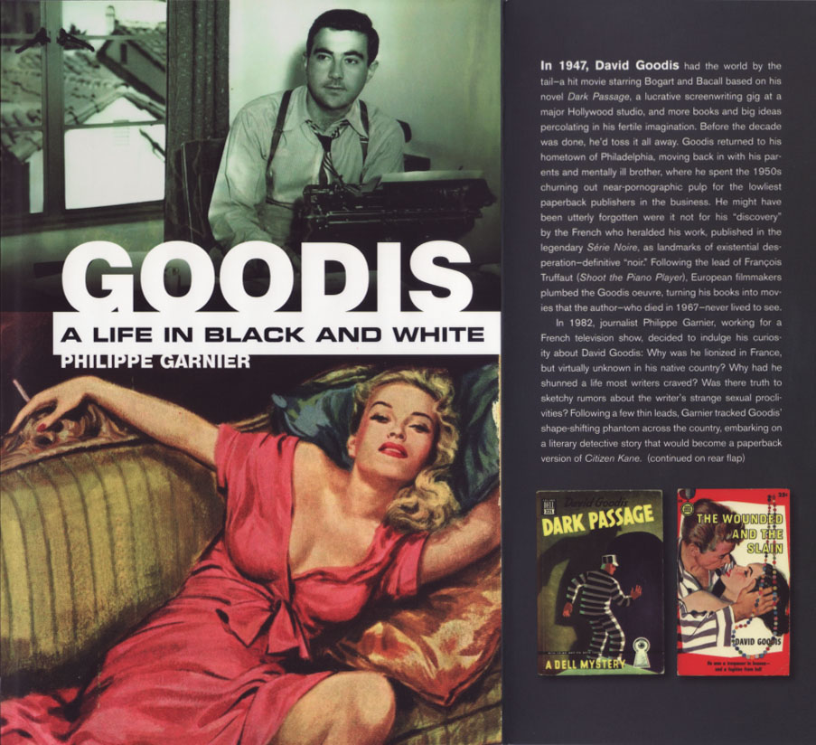 1939年、広告代理店勤務の傍ら書き上げたRetreat from Oblivionがダットン社からハードカバーで刊行されると、David Goodisは勇躍、ニューヨークの人となる。さらに1945年、Saturday Evening Postに連載されたDark Passageはワーナーブラザーズが$25,000で映画化権を取得、ハンフリー・ボガート&ローレン・バコール主演で映画化。しかもワーナー社は単にこの小説1作の映画化権を手中にするだけでは満足せず、David Goodisのストーリーテラーとしての才能を丸ごと囲い込むことを選択。それが同社とDavid Goodisが交わした最長6年間という長期専属契約(ただしワーナーブラザーズ側が1年単位で契約の破棄を選択できるオプション付き)。こうしてニューヨークから映画の都・ハリウッドへと活動の場を移したDavid Goodisはしかし1947年のThe Unfaithfulを唯一の例外として、以後、ハリウッドを去る1950年まで実際に製作にまで漕ぎ着けた台本を生み出すことはできなかった。これが実に不思議で、というのもこの間、David Goodisは決して創作者としてスランプに陥っていたわけではない。実はワーナー社とDavid Goodisとの契約とはいささか変則的なもので、ワーナー社が拘束できるのは1年のうちの半分だけ。残る半分はDavid Goodisが自由に使うことができて、彼はその期間を小説の執筆に当てた。自分はあくまでも小説家である――そんなこだわりからあえてこういう変則的な契約を望んだそうなのだけど、そして実際、David Goodisはこのワーナーとの契約期間中に2本の小説を書き上げている。そのうちの1本、NightfallはGeoffrey O'brienをして“his most nearly perfect book, the spare, balanced, and inexplicably moving”と言わしめる出来栄えで、当然、ワーナーが飛びついてよさそうなものなのだけど、なぜかそうはならなかった。それもまた不思議と言わざるをえないのだけど、ともあれ、ハリウッドに活動の場を移してからの5年間、彼が手がけた台本は一向に日の目を見ることはなかった。こうした外形的な事実だけを捉えるならば、ワーナー社とDavid Goodisとの契約は決して生産的なものだったとは言えず、そのような判断の下、ワーナー社が契約に含まれるオプション(一方的契約破棄)を行使したとしても何ら不思議ではない状況だったとは言えるはず。ただPhilippe Garnierがハリウッドで収集した証言や資料はそういう憶測を否定するものばかり。David Goodisと普段接する立場にあったワーナー社のストーリー・エディターは必ずしも印象が強いとは言えないDavid Goodisとの思い出を記憶の底から呼び覚ましつつ――