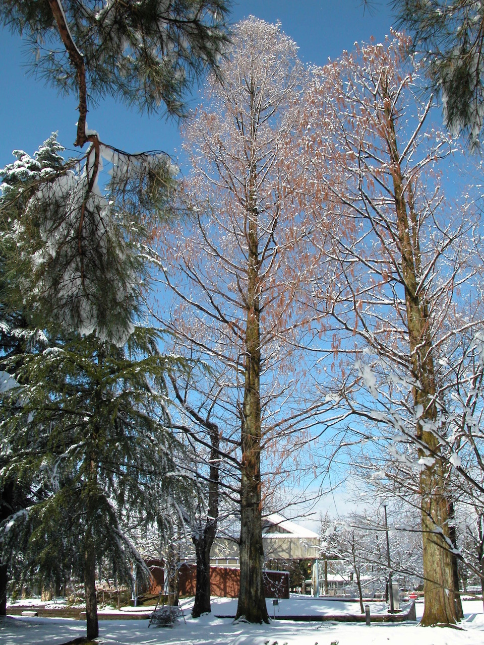 実はヒマラヤスギについて書くつもりだったのだけれど(これについては別に書きます。しばしお待ちを)、あれよあれよというような展開があって、メタセコイアについて書くことになってしまった。ま、ちょうどそういうシーズンではあるしね(例の韓流ドラマの影響で、今やメタセコイアといえば冬の風物詩。お隣石川県の金沢市でさる不動産会社が手がけているニュータウンの並木道なんて雪ともなればチュンサンとユジン気取りのカップルでそりゃあもう……)。