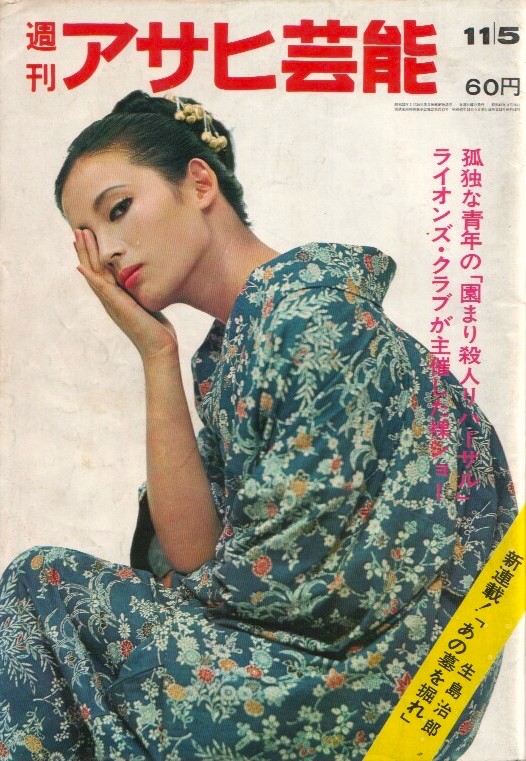 調べたところ、『あの墓を掘れ』の連載第1回が掲載されたのは1967年11月5日号。そして、1点だけだけれど、「日本の古本屋」に商品登録があった! これはもう、買え、ということですよね(笑)。で、買ったのが、→。右下に「新連載!「あの墓を掘れ」」という文字も見えますね。ちなみに、表紙の〝お女性〟は本田由香子というモデルさんだそうで。調べたところ、『コント55号 宇宙大冒険』という映画にマリリン・モンロー役(?)として出演経験もあるらしい。ただし、それ以上のことはわからず。まあ、そこまで調べる必要もないわけだけれど……。