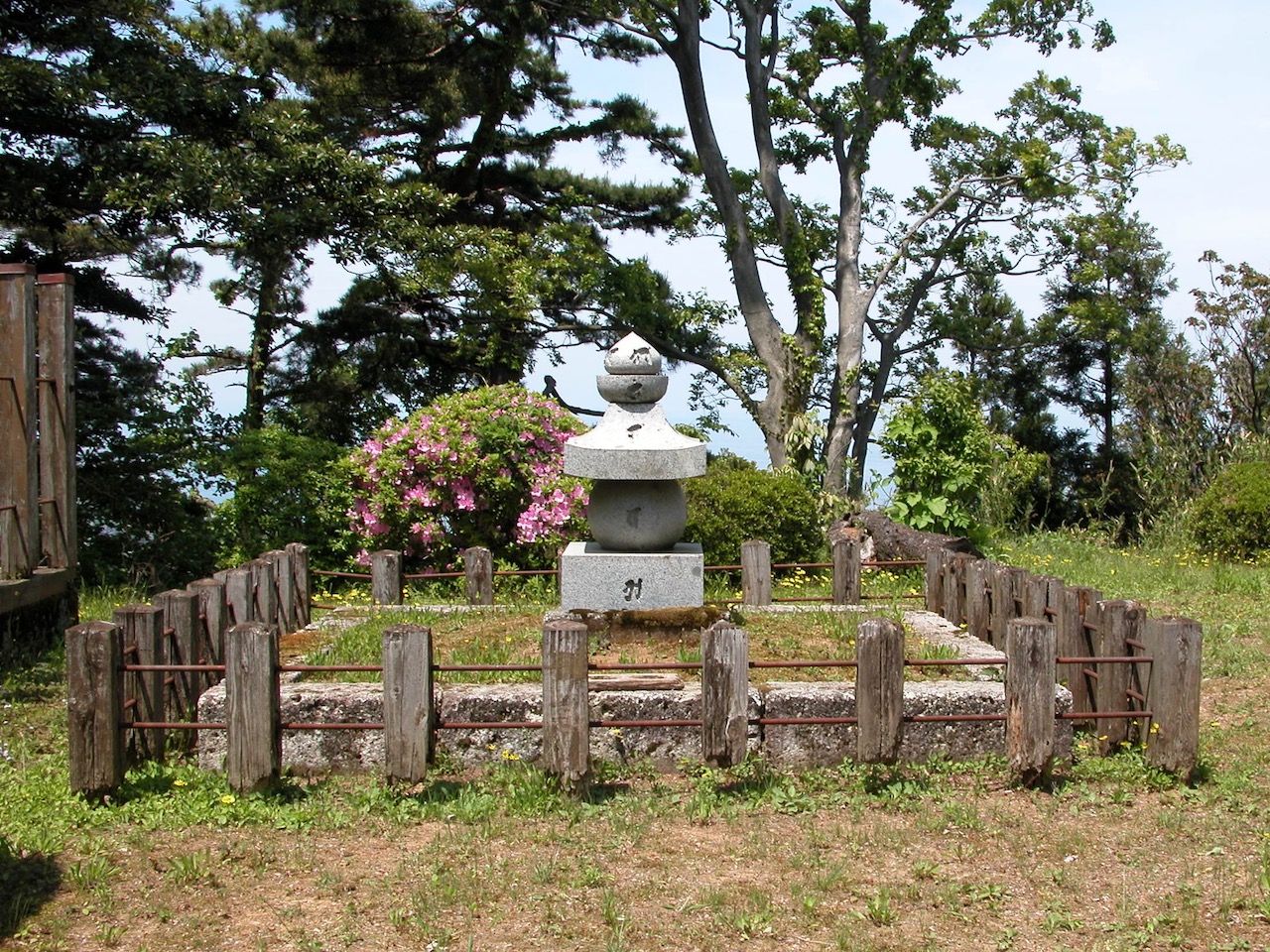 さーて、これを全文読み通すというガッツを発揮した勇者はいるやいなや……? ともあれ、ここに登場する「藤原氏ノ分流宮崎太郞長康」こそはわれらが宮崎太郎その人である――と、「北陸宮と宮崎太郎のための資料編さん委員会」では判断した(らしい)。ただ、↑には妙なことも書かれているよね。そう、「仝氏ハ日向國宮崎氏ヲ興シ後備中國ニ移リ源平蜂起ノ亂ニ木曾義仲ニ屬シ」――と、宮崎氏の発祥の地は日向国であり、その後、備中国に移ったとしている点。で、そもそもの発祥の地を日向国とするのはいいとしても、その後、備中国に移ったというのは、どーなの? 『朝日町誌 歴史編』によれば、「北陸宮と宮崎太郎のための資料編さん委員会」はこの件について岡山県に問い合わせたそうだ、「一二世紀以前に岡山県史に宮崎太郎長康家が見られるかどうか」と。すると、岡山県の県民広報課長から「宮崎一族は当地方出身の有名人としてはその姓が見られない」との回答が得られたとかで(さすがはクロウトが行った調査は違うわ……)、これを踏まえ「備中國」は「越中國」の誤記であると判断。かくて「藤原氏ノ分流宮崎太郞長康」こそは宮崎太郎である、ということが「北陸宮と宮崎太郎のための資料編さん委員会」の結論となった――と、どうやらそういうことらしい。そして城山の宮崎城三の丸跡には「北陸宮の御墳墓」と並んで(それを守護するように?)「宮崎太郎長康公の供養塔」が造られ、今に至っている――と、こういうことになるようだ。