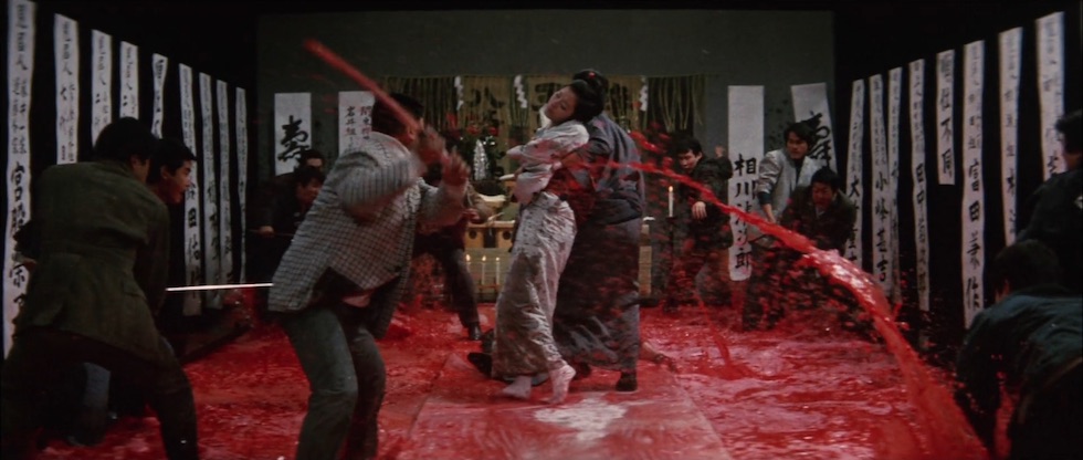 お手元に『映画秘宝EX 鮮烈!アナーキー日本映画史1959~1979』をお持ちの方は気がつかれたと思いますが、並びは必ずしも同書の通りとはなっていない。実は『映画秘宝EX 鮮烈!アナーキー日本映画史1959~1979』は相当に編集が甘いというか、一見、100本が時系列に沿って並べられているように見えて、そうはなっていない。1962年公開の『しとやかな獣』の次に1964年公開の『月曜日のユカ』が来たかと思うと次は1960年公開の『太陽の墓場』でその次は1962年公開の『危いことなら銭になる』。こういう混乱を正して時系列に沿って並べ替えたのが↑。表示しているのは公開年だけですが、すべて年月日も確認した上で時系列順としていることをお断りしておきます。で、言うまでもないことだろうとは思うけれど、黒で表示しているのが見た作品でグレーで表示しているのが見ていない作品。こうして見ると、まだまだ見ていない作品が結構あるなあ。ただ、中には配信はおろかVHSにもDVDにもなっていない作品もあって(たとえば森崎東監督『女生きてます 盛り場渡り鳥』とか)、この100本をコンプリートするのは至難の業ですよ。当然、興味をそそられない作品だってあるわけだし(佐藤肇監督『吸血鬼ゴケミドロ』とか坂野義光監督『ゴジラ対ヘドラ』とか。基本、ワタシは特撮には興味がありません)。だから、こんなもんじゃないかなあ。で、黒で表示している作品の内、太字表示した10本がワタシが選んだ「アナーキー日本映画選」ということになる。冒頭で紹介した山下耕作監督『博奕打ち いのち札』は、悩んだ末に、外した。これね、確かにスゴイ映画ではあるんだよ。例の『シャイニング』の回廊のシーンに準えられたシーンはこんな感じなんだけれど、常軌を逸している。これを「アナーキー」と言わずしてなんと言う⁉ とは思うんだけど、一方で計算のようなものも透けて見えるというか。実はこのシーンの前に鶴田浩二演じるやくざ(相川清次郎)が渡瀬恒彦演じるチンピラ(フーテンの猛)と一緒に田舎(長崎)に帰ることになった娘(恵美)から母の形見と言って十字架を渡されるというシーンがある。それを踏まえて最後のシーンを見ると、かの有名なセシル・B・デミル監督『十戒』の「モーセの海割り」が重なって見えるではないか。しかも、この時、鶴田浩二はこう叫ぶわけだから――「こんな渡世から出ていくんだ!」。だから、製作サイドが最後のシーンに『旧約聖書』の「出エジプト記」を重ね合わせているのは間違いない。そうなるとねえ……。これはよく知られている事実だけれど、『博奕打ち いのち札』の製作チームである山下耕作&笠原和夫のコンビは1968年製作の『博奕打ち 総長賭博』で三島由紀夫から望外とも言えるお褒めに与った。曰く「私は、〈総長賭博〉を見た。そして甚だ感心した。これは何の誇張もなしに「名画」だと思った。何という自然な必然性の糸が、各シークエンスに、綿密に張りめぐらされていることだろう。セリフのはしばしにいたるまで、何という洗練が支配しキザなところが一つもなく、物語の外の世界への絶対の無関心が保たれていることだろう。(略)何という絶対的肯定の中にギリギリに仕組まれた悲劇であろう。しかも、その悲劇は何とすみずみまで、あたかも古典劇のように、人間的真実に叶っていることだろう」(『蘭陵王』所収「鶴田浩二論――〈総長賭博〉と〈飛車角と吉良常〉のなかの――」より。なお、初出は『映画芸術』1969年3月号)。要するに三島由紀夫は『博奕打ち 総長賭博』をギリシア悲劇に準えて〝絶賛〟したわけだけれど、それに気を良くした山下耕作&笠原和夫のコンビは今度は『旧約聖書』を持ち出してご贔屓筋の期待に応えようとした――と、そんな消息が容易に読み取れてしまうんだよね。だから、ワタシとしては、確かに凄いシーンではあるけれど、諸手を挙げて賛成とは行かないんだよ。それよりも、この映画で讃えるべきは「冬の日本海」の描写でしょう。「冬の日本海」なんて、別段、珍しくもないんだけれど、とはいえこれは格別。ほとんど東山魁夷ですよ……。まあ、そうは言っても、選出するのが10本なら選外とするしかない。所詮、「任侠映画」はワタシの専門外です。で、そうなると、1970年代製作の5本はすべて既に見ていた作品、ということになる(もっとも『白昼の襲撃』は見たのはつい最近だけどね)。一方、1960年代製作の5本は今回はじめて見た作品ばかり。多分、こんなことでもなければ、生涯、見ることもなかっただろう。ところが、これが名作揃いで。中川信夫監督『地獄』なんて、結構、見るのに抵抗があったんだけど。というのも、ワタシは神代辰巳が1979年に撮った『地獄』を見ているので。もうね、神代ファンとしては見ているのが辛くなるような愚作で。だから、『地獄』はなあ、と。ところが、見始めてほどなくこんなシーンに遭遇――
