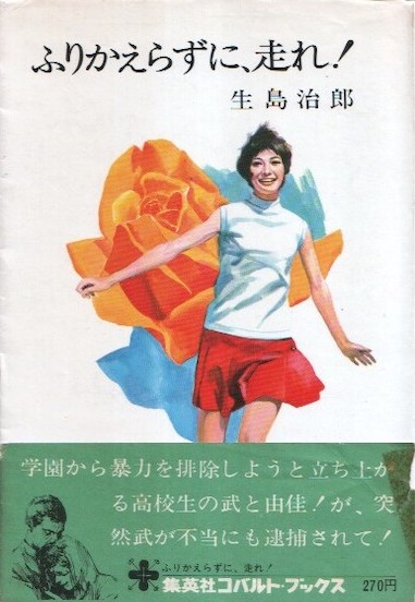 どうもね、タイトルが決まりすぎていて、はたしてこのタイトルに値する記事になるか一抹の不安を覚えないでもないんだけれど……このところ続けている未読の生島作品をターゲットとした「センチメンタル・ハードボイルド」を求めてのマイニングの最後はこの作品と決めていた。1969年に集英社のペーパーバック・ライン「コバルト・ブックス」から刊行された『ふりかえらずに、走れ!』。コバルト・ブックスというのは「ジュニアのための文芸書シリーズ」というのが謳い文句で、いわゆるジュヴナイル小説ということになるわけですが、生島治郎がジュヴナイル小説を? というのがまず誰しもが思うところだよね。でも、実は生島治郎は結構この手のものを書いていて、なんと『女学生の友』にも書いたことがある(こちらがその掲載誌です)。だから、驚くには当たらない。そもそも、『ふりかえらずに、走れ!』は初出は『ボーイズライフ』だから。ああ、『ボーイズライフ』ならば生島治郎が書いていてもさほどおかしくはないな――と、この少年雑誌を読んだことがある方なら思うはず。かく言うワタシは世代的にこの雑誌の愛読者だったとはとても言えないわけだけれど、ただワタシの6つ違いの兄が愛読者で。だから、ワタシも兄の部屋にあった雑誌を憧れを以て盗み見たもんですよ。なんかね、やたらに大人びた雰囲気がしていたなあ。だから、ワタシの印象としても、あの雑誌だったらば生島治郎が書いていても全然おかしくないなと。ちなみに、連載されたのは1966年11月号〜1967年12月号。生島治郎が直木賞を受賞したのは1967年7月なので、ちょうどこの連載中に受賞したことになる。直木賞受賞作家が現在進行形で連載中だったんだから、編集部としてもさぞや沸き立ったことでしょう。あわよくばこれを梃子に雑誌の売り上げ増につなげたい……、そんな思惑も働くだろうし。しかし、そういう余沢はなかったということか、『ボーイズライフ』は1969年8月には廃刊となってしまう。まあ、わずかにこの雑誌を盗み見た程度の印象で言うのもなんだけれど、ちょっと趣味的すぎたような気がするなあ。それに、対象年齢を13歳から17歳に絞り込んでいたというのも狭すぎる気がするし。でも、すごいよ、小説では生島治郎や大藪春彦、マンガではさいとうたかをや篠原とおる。もうハードボイルドな匂いがムンムン。少年向けメディアにこんなに「ハードボイルド」が盛られていた時代があったということ。